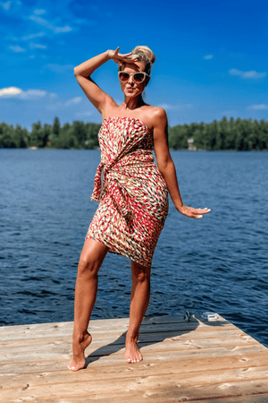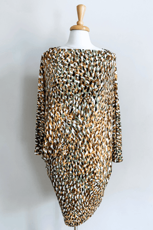 • Our signature Origami Dress featured in NEW Brushed Venezia prints. Hand-picked for color and the ability to easily coordinate with all of your capsule basics. The Origami is an elegantly cut, incredibly versatile top & dress solution for travel and everyday adventures. Featuring our signature batwing sleeves, this asymmetrical design has a hidden reinforced snap that transforms this dress into many beautiful looks. The Origami has a relaxed fit and is incredibly flattering, especially for curvy body types, and the perfect choice to take you from casual to cocktails. Now, even better than ever, this buttery soft Brushed Venezia jersey guarantees this design to be the best dress investment you will ever make.