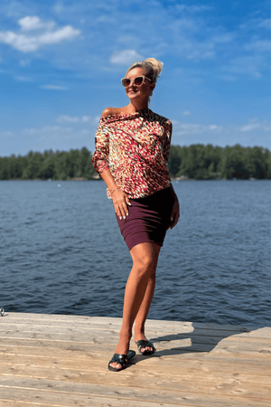 Introducing our classic Skort! We've transformed your Favourite Travel Tights into a Skort by lengthening the skirt panel by 5.5" and turning the leggings into cycle shorts... hence the multi-way Skort made from super soft Brushed Venezia — "A romper for the cottage and a sleek pencil skirt for cocktails - who could ask for more?" Skort length size 1 = 20" add approx 1" per size.